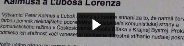 Keď postavili v rodnej obci pamätník Vasiľovi Biľakovi, výtvarník Peter Kalmus spolu s Ľubošom Lorenzom ho natreli na červeno. Za tento čin sú trestne stíhaní, čo spustilo petíciu, v ktorej môžu ľudia schvaľovať tento čin. Pridajte sa ku Kalmusovi – samoudávanie sa začína Zdroj: .týždeň Comments Komentáre